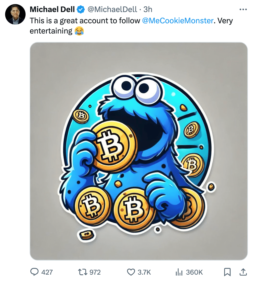 The exchange ended with both of them sharing a funny image of the Cookie Monster eating “bitcoin cookies.”