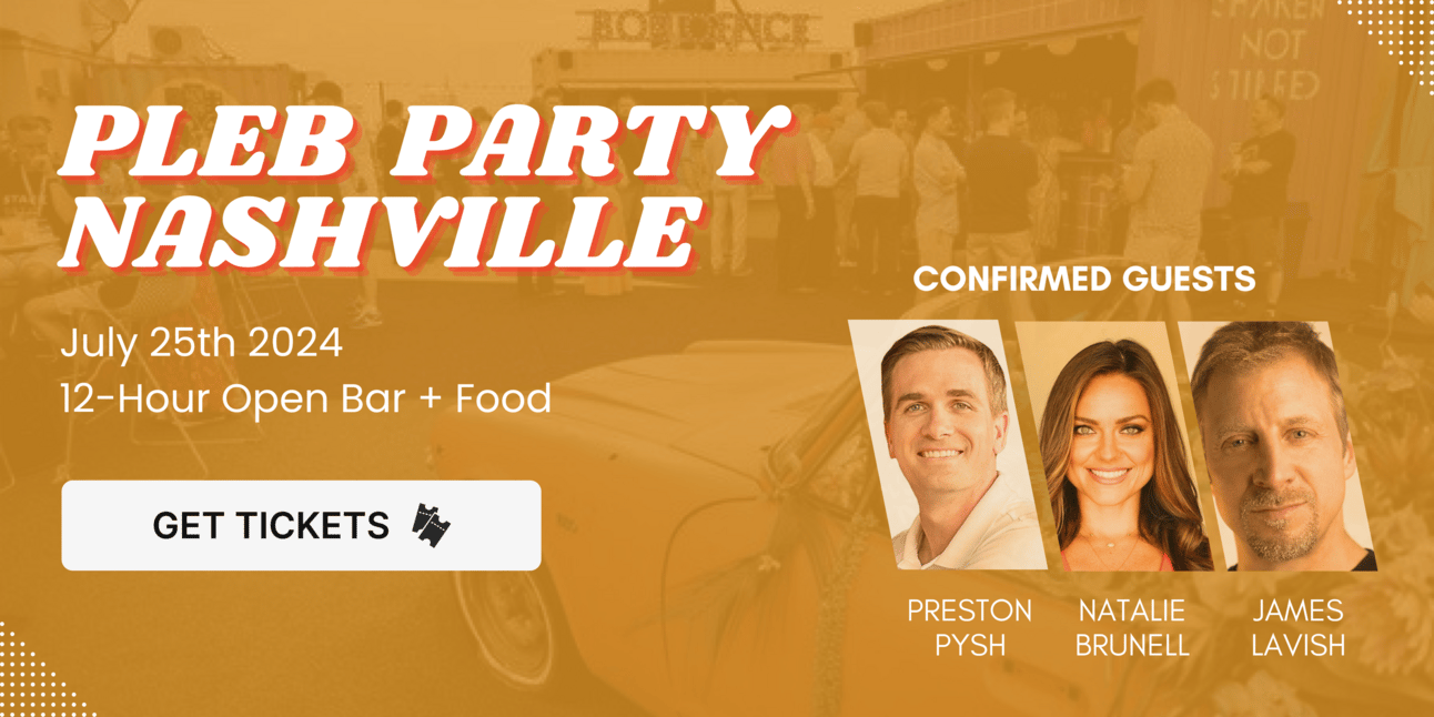 Attending Bitcoin Nashville ‘24? Come meet your favorite Bitcoiners at the Pleb Party for an epic 12-hour event with an open bar!