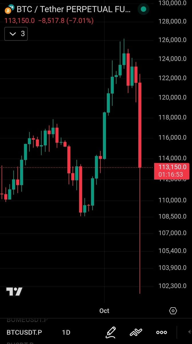 Still, from a Bitcoin perspective, it wasnât as severe as past sell-offs. The price fell about 16% at its lowest before stabilizing under a 10% drop. The broader crypto market, however, was a bloodbath with flash crashes to zero and leveraged portfolios completely wiped out.