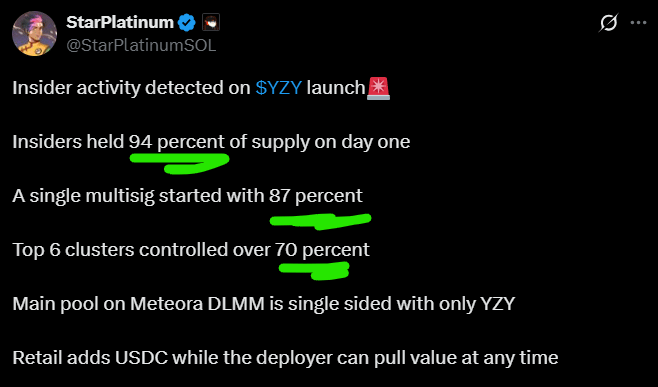 But who cares about the focusing illusion? Well Well, take a look at this week's disastrous token launch by Kanye (the coin ticker is “YZY” if you’d like to see how far its down already).
