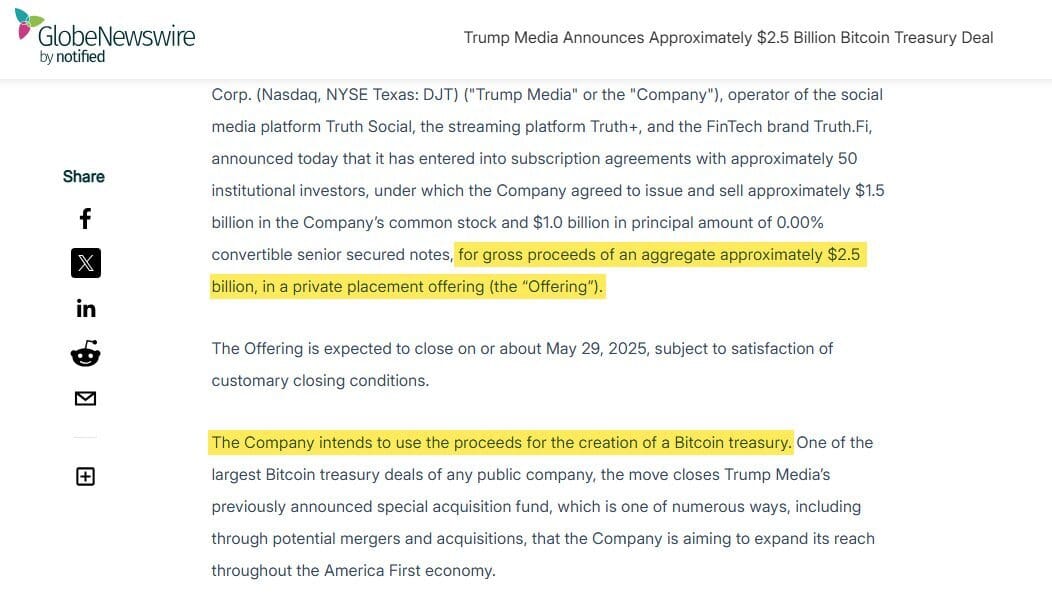 There was no further comment. However, the official $2.5 billion figure, which was announced shortly after by Trump Media through a press release, aligns with its actual filing and investor communication.